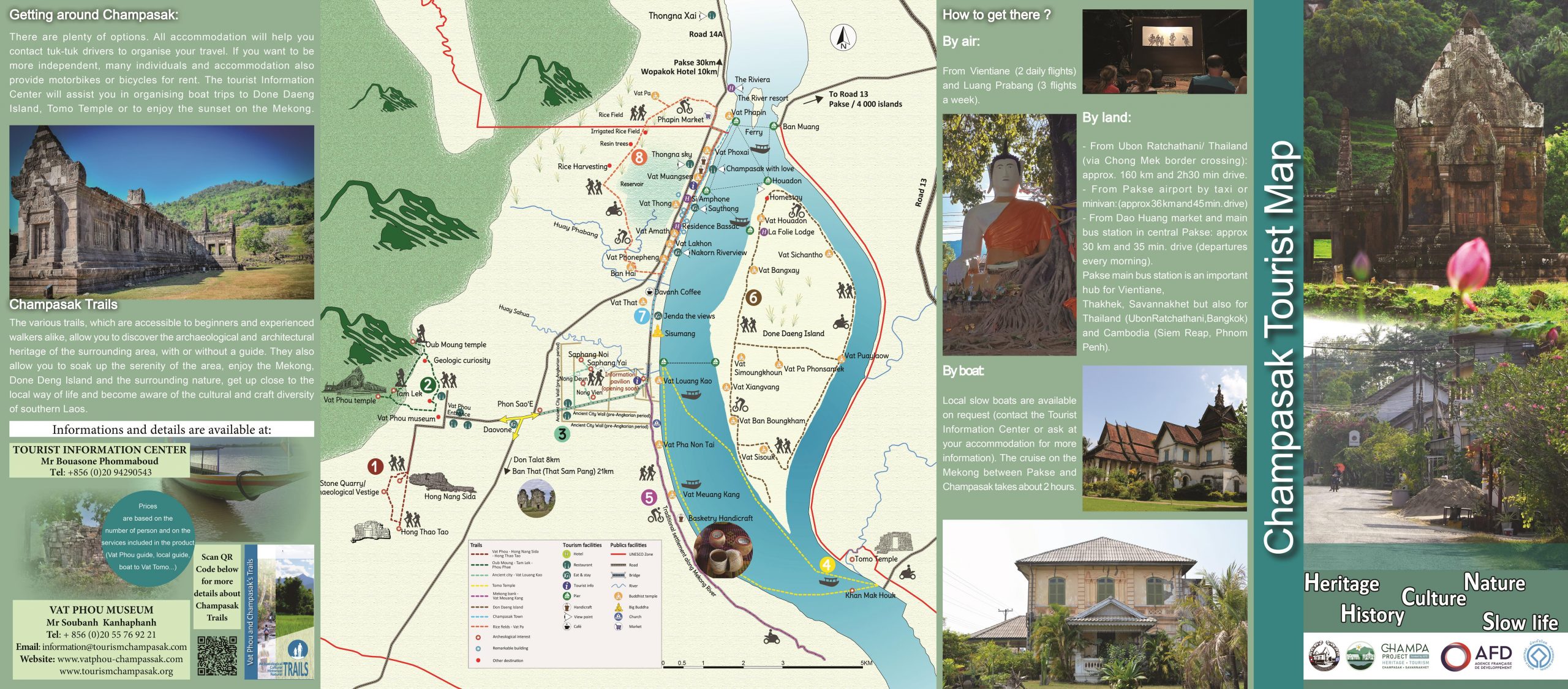 Our downloadable brochure gives you access to useful information to discover the Champasak district: the UNESCO World Heritage site: Vat Phou, the Mekong, the rice fields, its traditional and colonial architecture and other wonders.