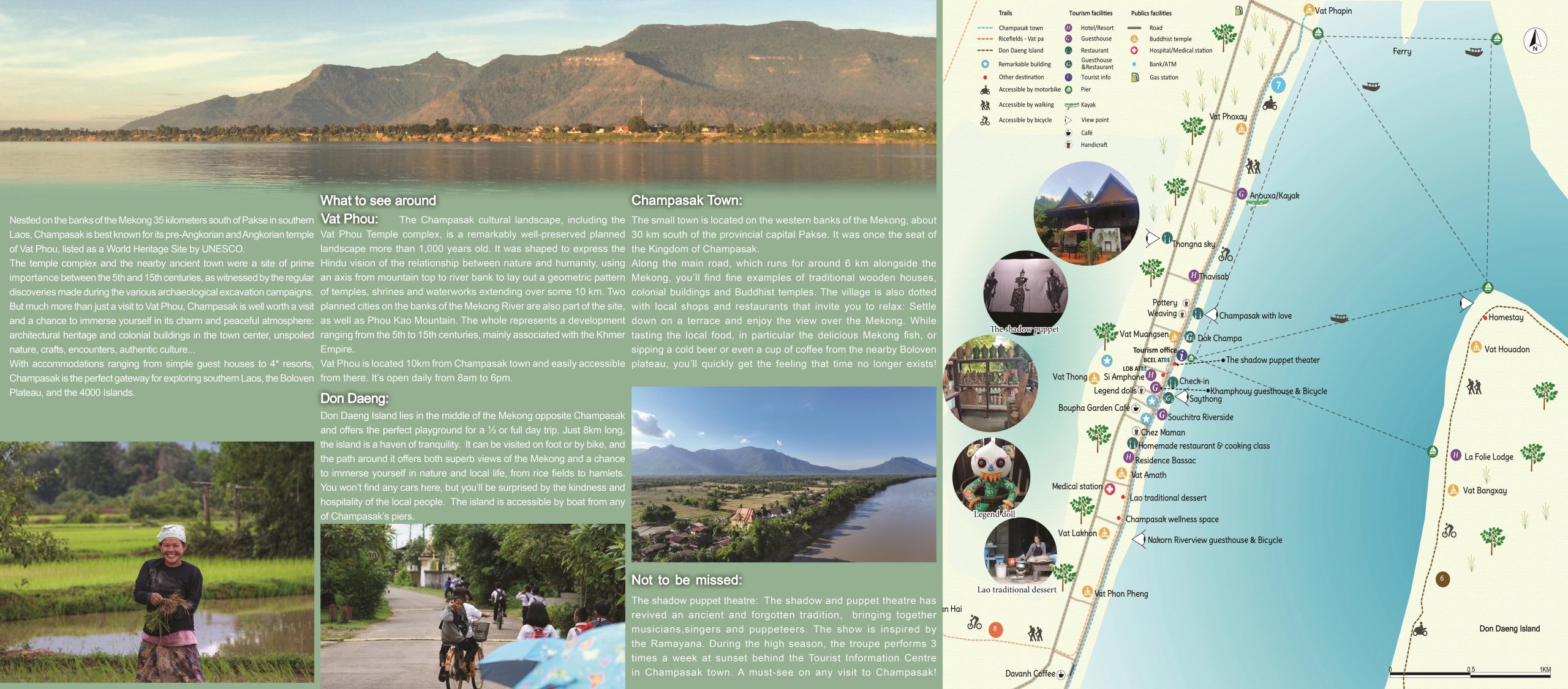 You will also find the different accommodations and services that the Champasak District offers to its visitors.