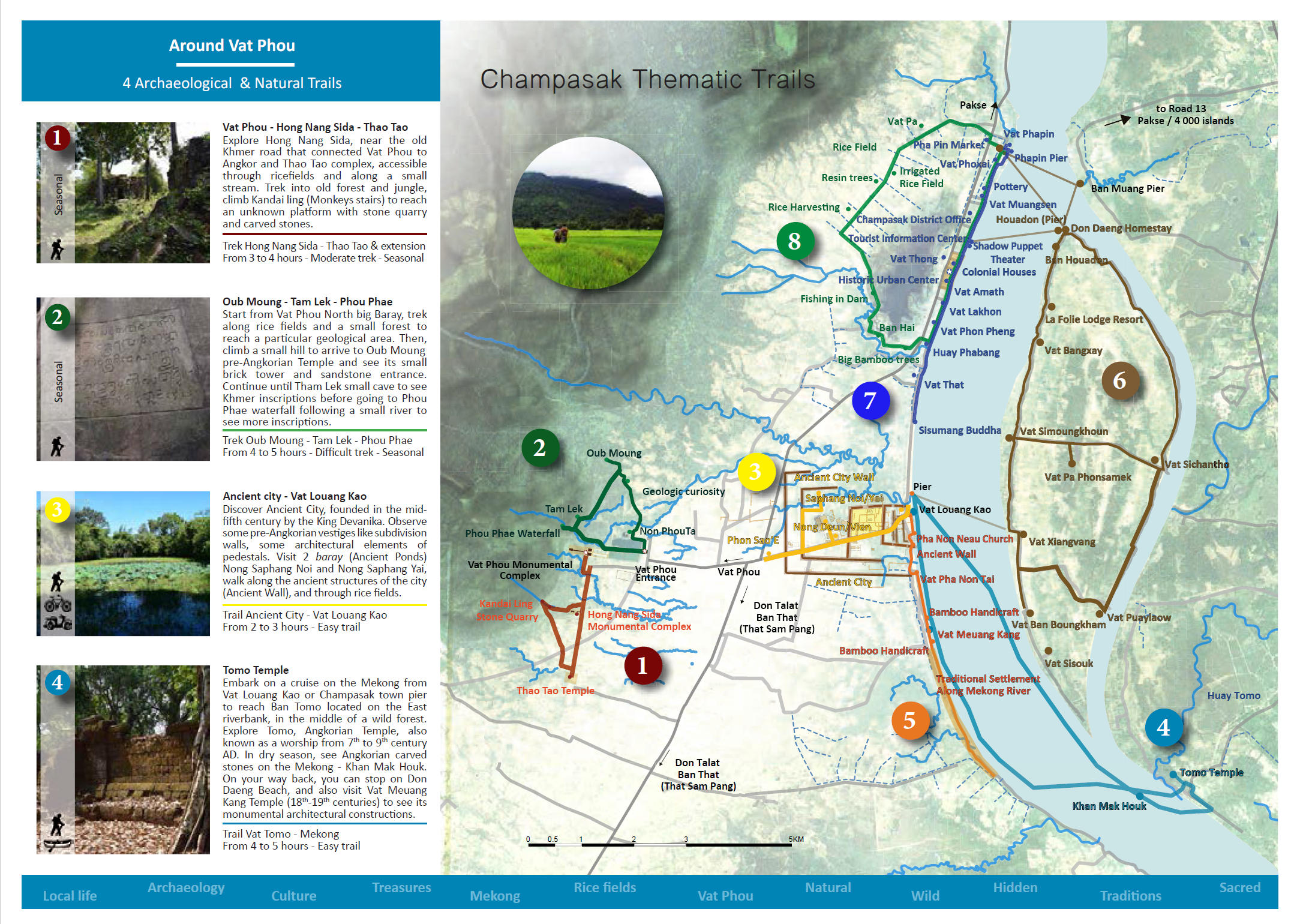 The Champasak Trails brochure will enable you to discover unsuspected gems in the district of Champasak.