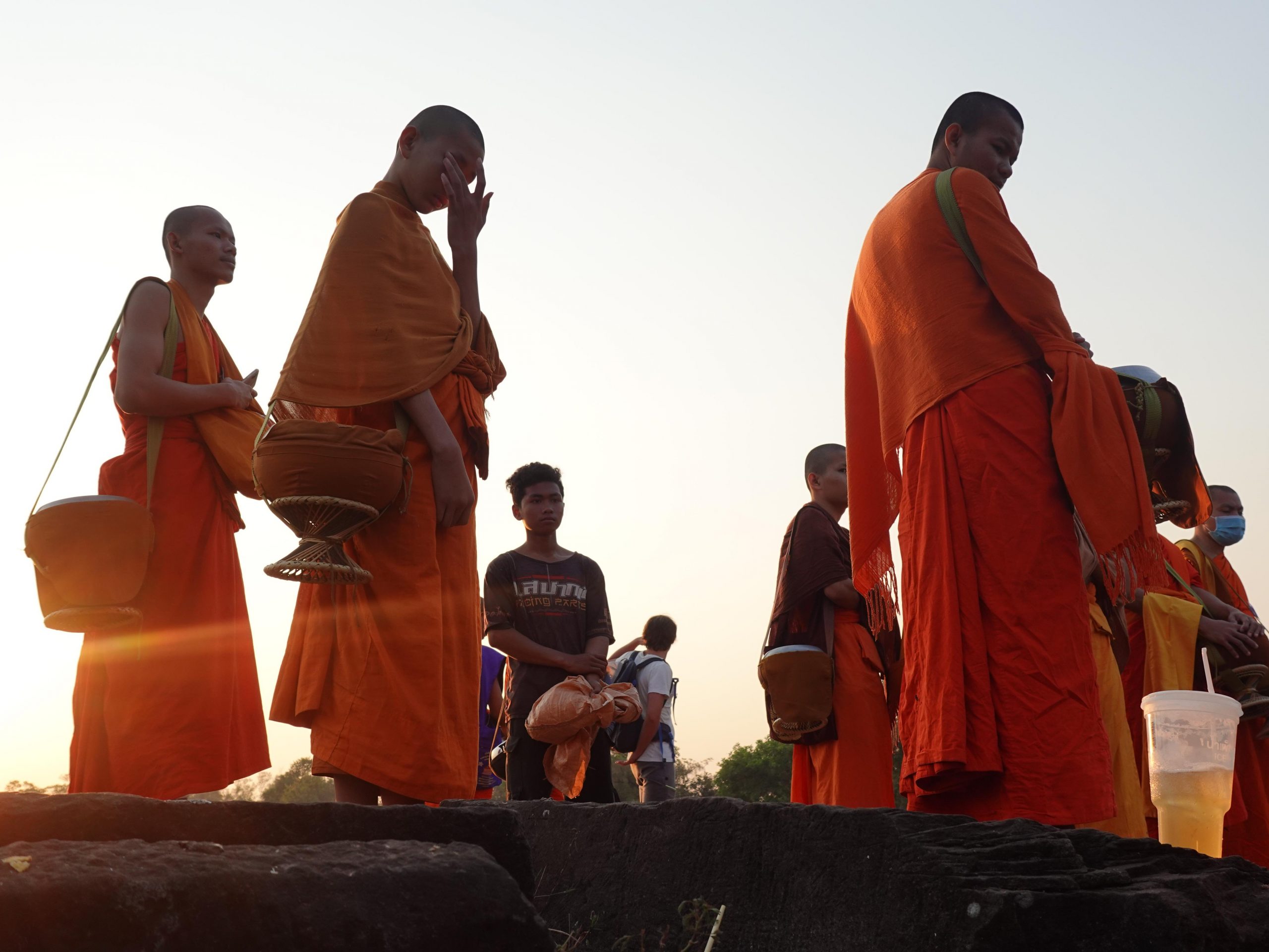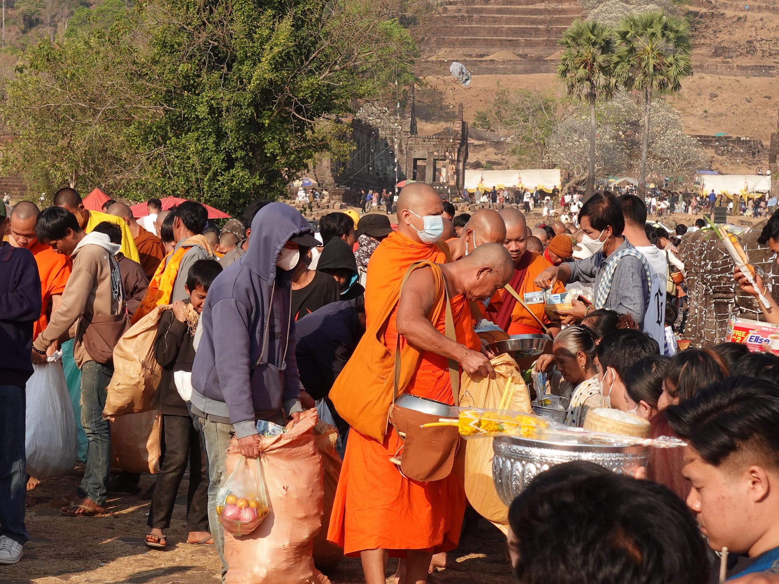 This is the largest festival in Champasak Province and one of the largest festivals in the entire country. It is held annually on the grounds of the enchanting pre-Angkorian remains of Vat Phou in Champasak. This festival attracts thousands of people each year, who come for prayer ceremonies and to enjoy the festivities. There is also a trade fair showcasing the products from the southern provinces of Laos, and from the neighbouring countries. On the day of the full moon, at dawn, the faithful gather in large numbers for the ceremony of offerings to the monks. The same day at sunset, a large procession goes through the site with candles in hand in a spectacle full of serenity.